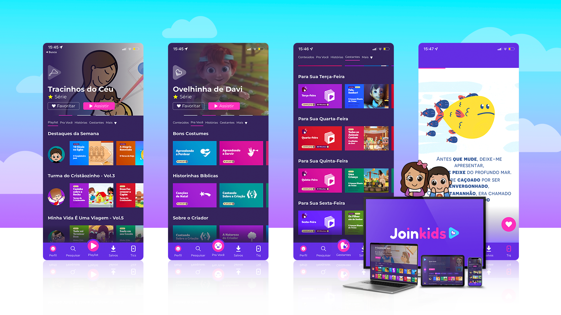 O aplicativo também estará disponível para tablets e Smart TVs. Além do lançamento da JoinKids para o próximo mês, os organizadores do produto também preparam alguns projetos paralelos para igrejas, produzindo mais vídeos originais a serem lançados ainda em 2022. E, para o próximo ano, as crianças podem esperar novas séries autorais, livros digitais inéditos com animações e materiais para download.